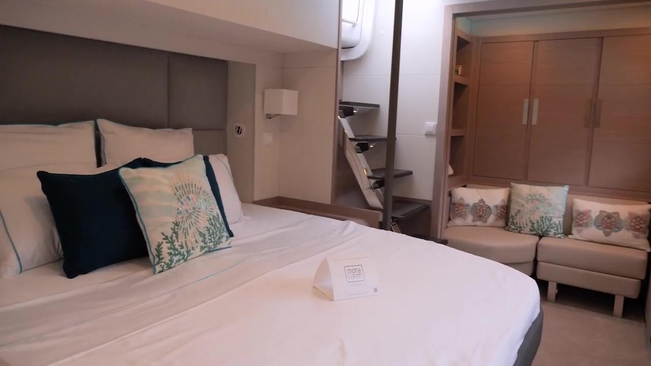 Kabinen (5 + 2 crew), Bad (5), Toiletten (5), Motor (2x Volvo Penta D6-480), Bugstrahlruder, Klimaanlage, Heizung, Generator (17Kw), Entsalzungsanlage (Schenker ZEN 150), Art der Batterien und Ampere (Lithium pack 30kw)