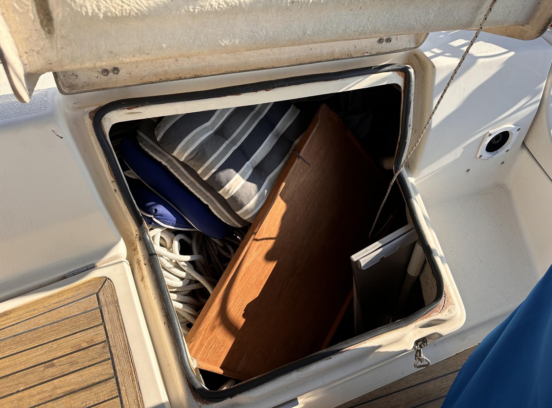 Manuelle Winsch (5), Stopper, Teakcockpit, Außenborder-Motorhalterung, Cockpit-Dusche, Steuerradabdeckung