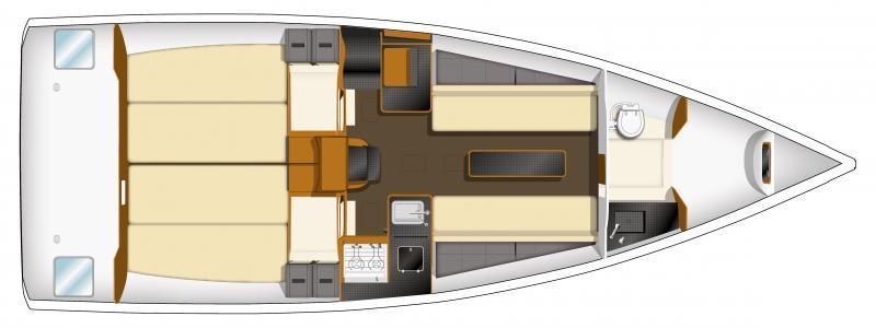 Questa imbarcazione è stata concepita per le regate e offre una combinazione unica di velocità, stabilità e solidità. È estremamente sensibile alla barra e brillante in tutte le andature.